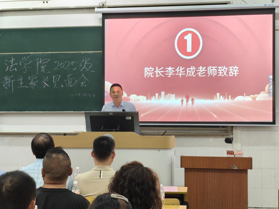 会议伊始,德赢ac米兰官方合作vwin院长李华成登台致辞,向远道而来的新生家长致以热烈欢迎。他围绕学科建设成果、优质师资队伍、人才培养亮点三大维度,系统介绍了德赢ac米兰官方合作vwin的发展现状,生动展现出学院在新时代法学教育浪潮中的强劲实力与鲜明特色。李院长强调,当前法学教育需紧密贴合社会需求,着力培养兼具扎实法治素养与过硬实践能力的复合型人才;同时寄语新生,希望他们在大学期间深耕专业知识、锤炼综合本领,以青春之力投身法治建设事业,书写无愧于时代的青春篇章。