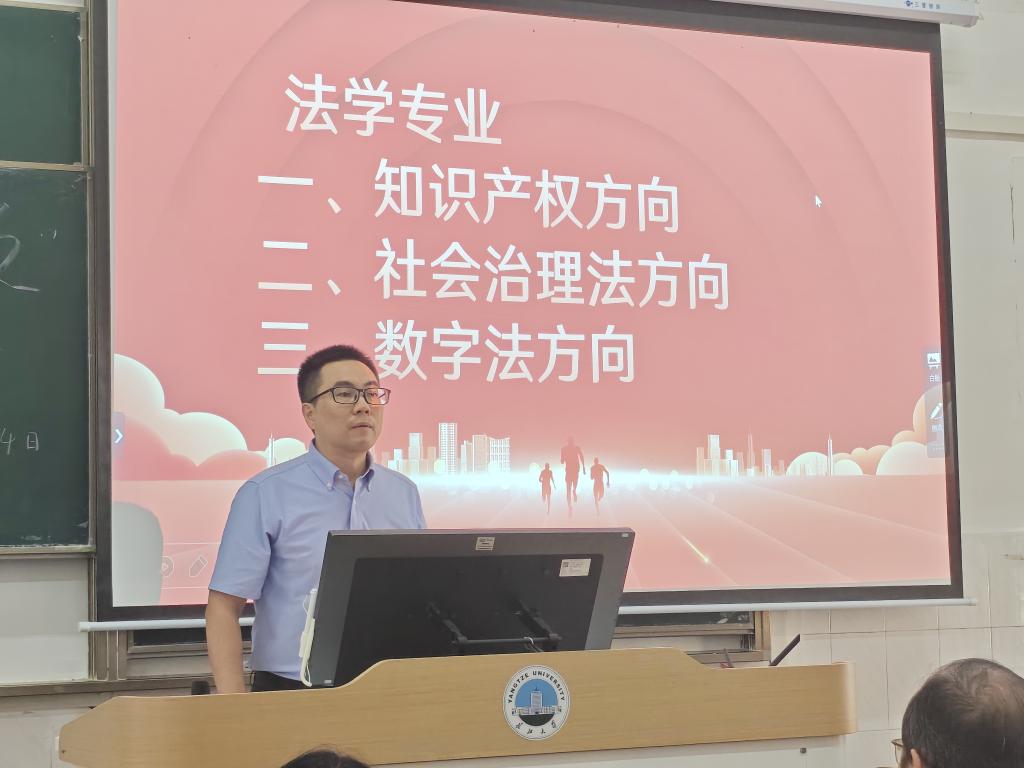 随后,德赢ac米兰官方合作vwin本科生教学副院长杨春磊聚焦本科生人才培养方案展开深入解读。他重点介绍了法学专业下设的知识产权、社会治理法、数字法三大特色培养方向,从课程体系构建、实践教学安排、学术资源支撑等方面进行详细阐释,尤其强调了英语四六级考试对学业发展与未来就业的重要性。
