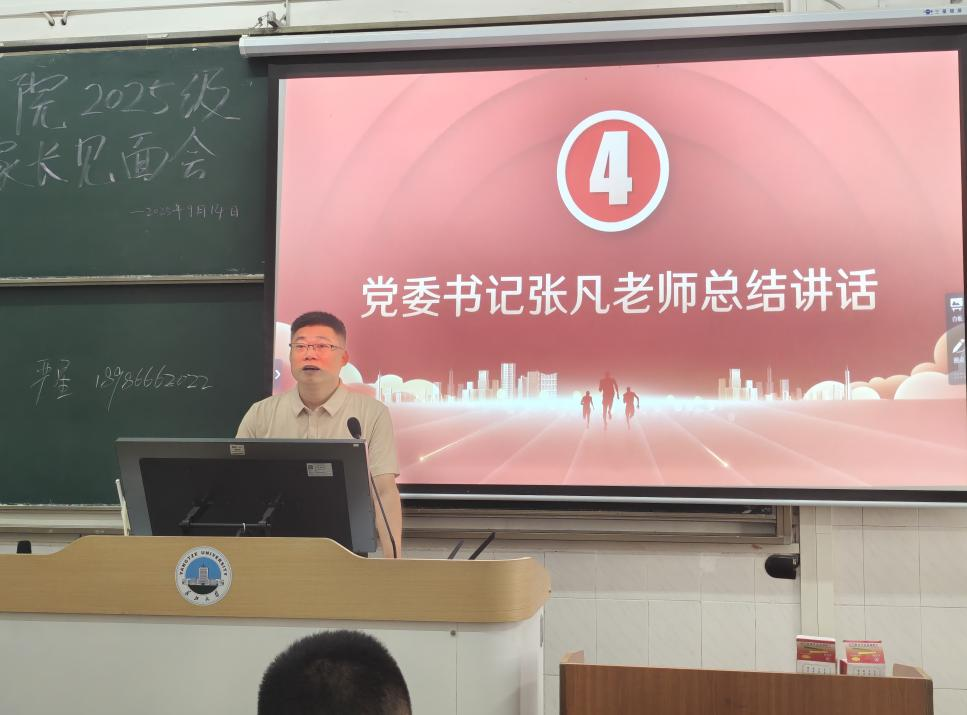 会议尾声,党委书记张凡发表总结讲话。他着重强调家校协同育人的重要意义,呼吁家长与学院保持密切沟通、形成育人合力;同时鼓励新生树立远大理想,以严谨务实的态度钻研法学专业知识,以积极饱满的姿态参与校园文化活动,在德赢ac米兰官方合作vwin的育人平台上成长为德法兼修的高素质法治人才。