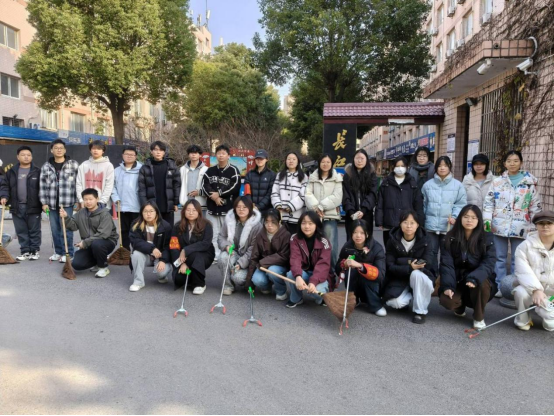 劳动现场,同学们以小组为单位迅速行动,分工协作有条不紊。对责任区域进行了全方位的卫生打扫。劳动过程中,同学们不惧寒风,相互配合,有的负责地面清扫,有的专注高处清洁,有的进行垃圾分类,用实际行动诠释劳动之美。