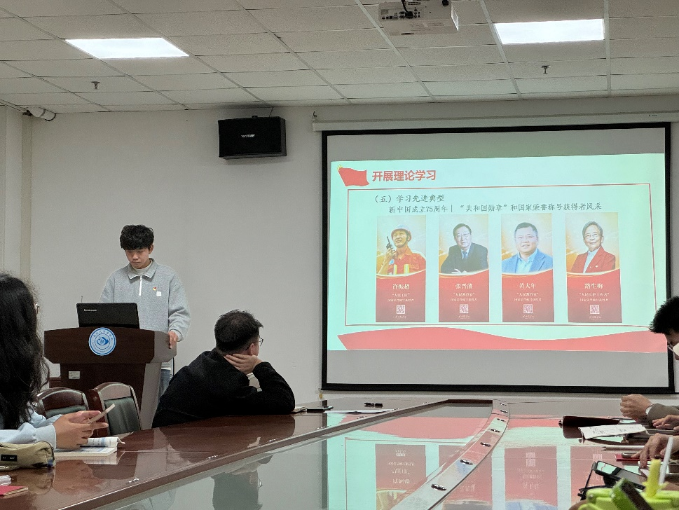 在理论学习环节,主持人从习近平总书记重要讲话和重要批示精神、党的二十届三中全会精神、省委会议精神、学校会议精神四个方面深入阐释了理论学习的必要性。此外,通过学习先进典型人物,领略新中国成立75周年“共和国勋章”和国家荣誉称号获得者的风采,激励党员不断担当作为,开拓进取,立足本职岗位勤耕耘,胸怀强国之志,锤炼强国之技,为民族复兴作出更大的贡献。