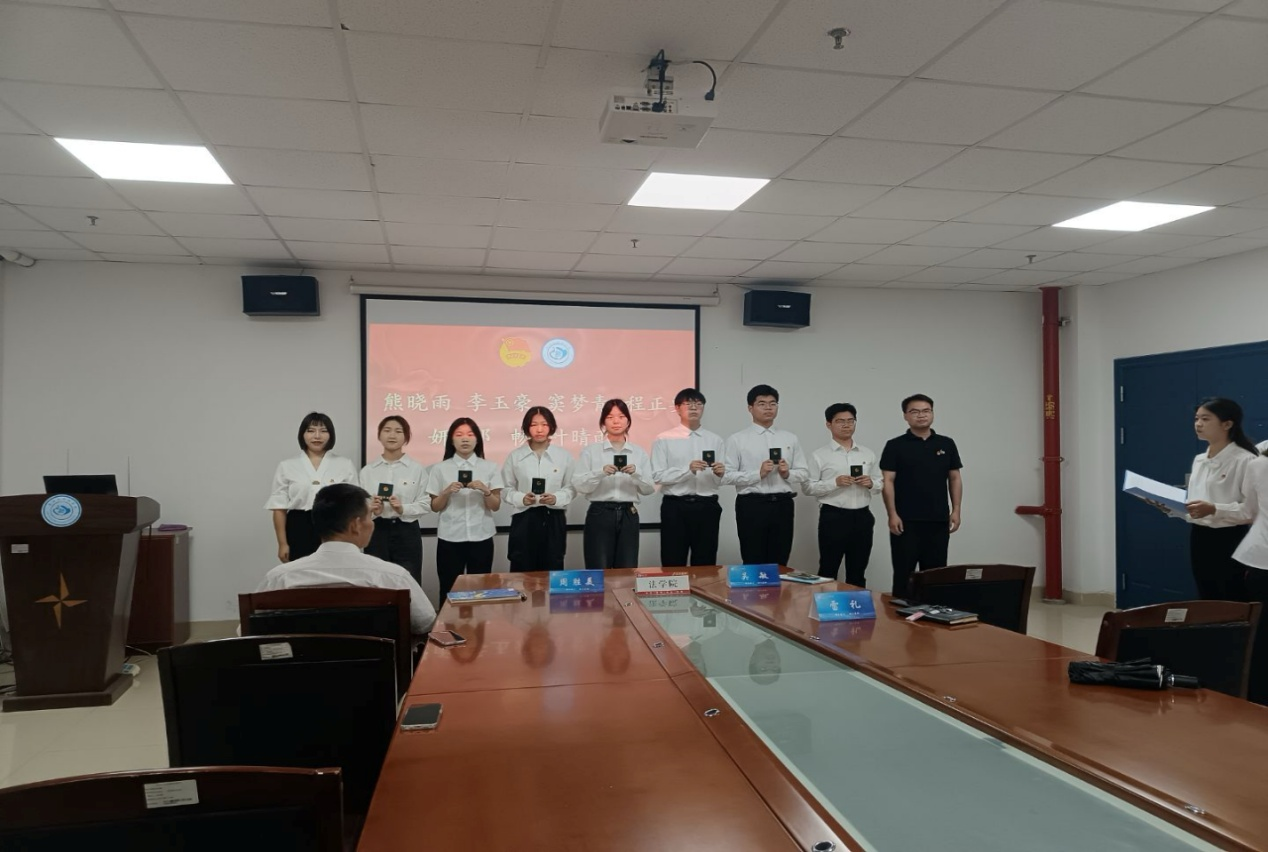 (通讯员 杨婉婷 / 向若涵)为进一步增强共青团员的光荣感和使命感,引导广大青年弘扬五四精神,5 月 26 日下午,德赢ac米兰官方合作vwin在文科大楼 1110 会议室隆重举行 2025 年新团员入团仪式。德赢ac米兰官方合作vwin党委书记周胜美、本科生党支部书记雷礼、团委书记吴敏出席活动,7 名新发展团员及 11 名团员代表共同见证这一庄严时刻。