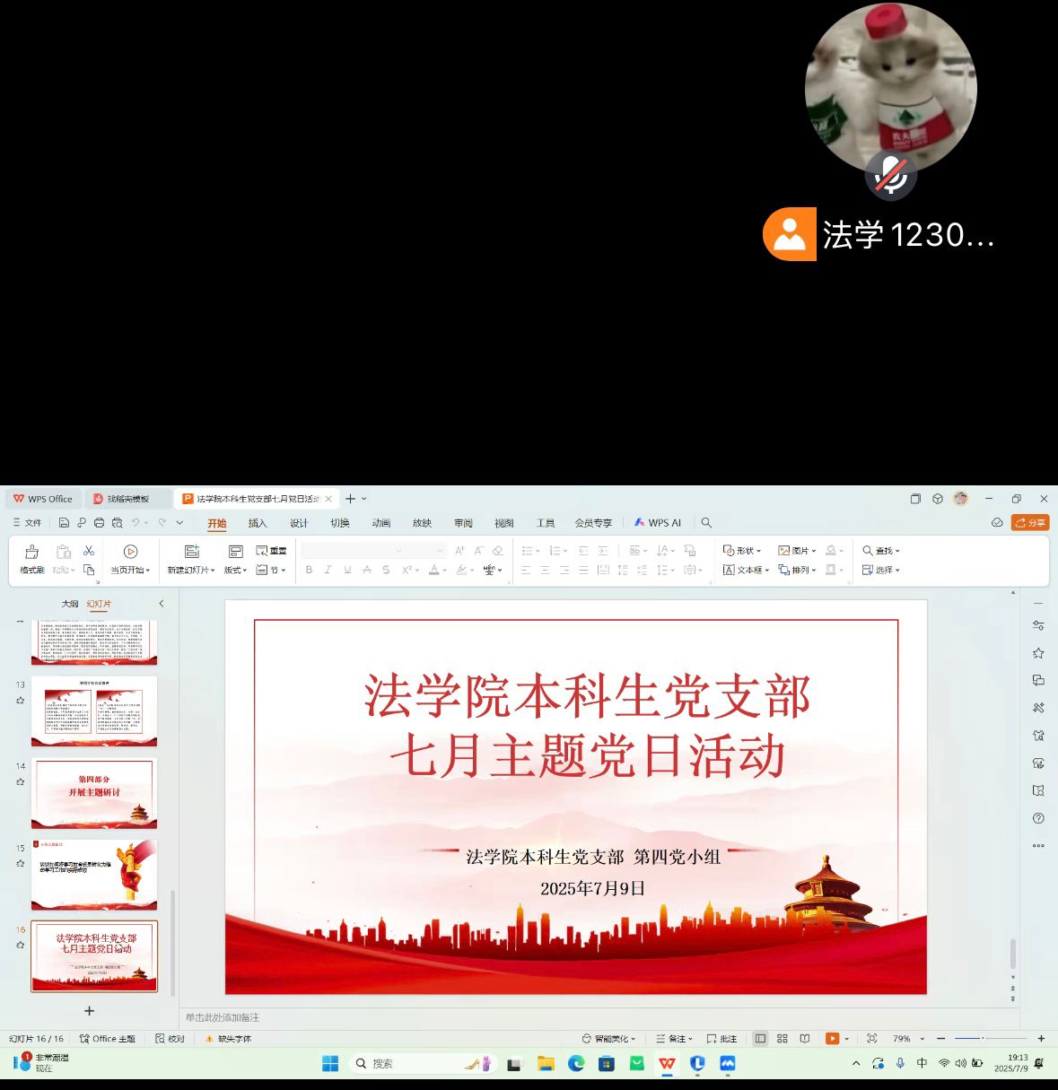 (通讯员 张梓萱)7月9日,德赢ac米兰官方合作vwin本科生党支部于腾讯会议线上开展7月主题党日活动。本次活动由任易慧同志主持,德赢ac米兰官方合作vwin本科生党员全体参加。