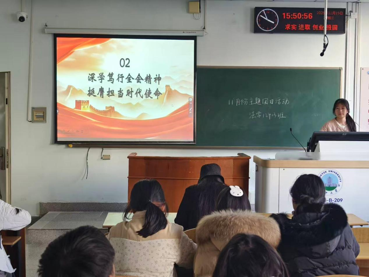 本次主题团日活动主要围绕系列当代特色思想精神展开:学习习近平关于《中共中央关于制定国民经济和社会发展第十五个五年规划的建议》,让同学们领悟到青年肩负时代重任,应脚踏实地,把握住时代机遇;学习《中国共产党第二十届中央委员会第四次全体会议公报》,让同学们体会到个人梦与国家梦的统一,明晰新时代青年要坚定理想信念,筑牢青春根基,以小我融大我,助力国家发展;学习王忠林关于“十五五”发展的相关阐述,激励同学们锤炼过硬本领,凝聚奋进力量,开创美好未来;学习党的二十届四中全会精神,勉励同学们自觉与时代共振,紧跟党的前进步伐,实现思想自觉与行动自觉相统一;活动同步开展了“筑牢网络安全防线,共建清朗网络空间”的宣讲,引导青年学生共同学习网络安全知识,增强青年学生网络安全意识,引导团员自觉维护网络环境。