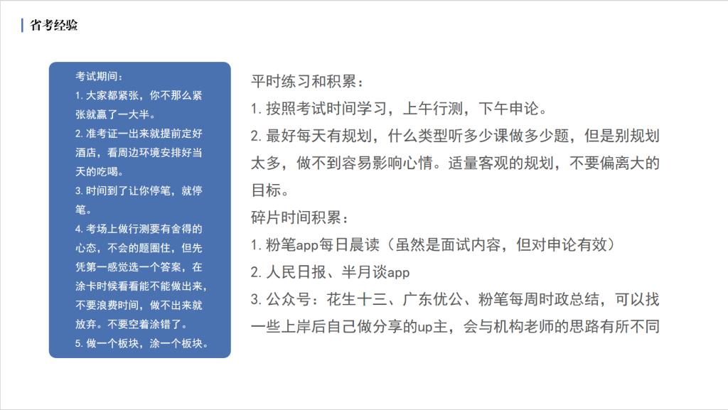 广东省考上岸的韦明慧聚焦考公全流程分享实用经验。她强调,考公首要任务是明确自我认知,杜绝盲目跟风;选岗环节需综合考量地理位置、岗位条件(参考往年专业限制、政治面貌要求等),并密切关注报名、笔试等关键时间节点;笔试备考应采取分模块突破策略,面试需兼顾仪态规范与内容质量;同时,要注重考试心态调整,做到合理取舍,日常备考需强化效率意识与坚持精神,关注身心健康,避免焦虑情绪。
